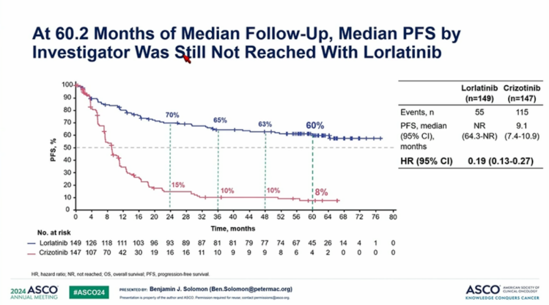 2024-06-05 11:13:29三代ALK抑制劑洛拉替尼,注定載入癌癥治療史冊。今年ASCO會議第一天,洛拉替尼CROWN研究隨訪5年數據正式公布。數據顯示,洛拉替尼一線治療ALK陽性非小細胞肺癌(NSCLC)的CROWN研究5
